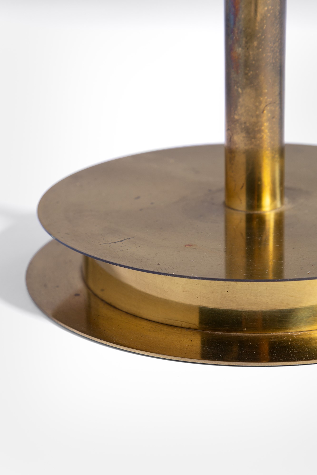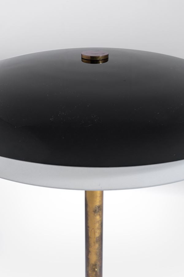 Ottone, metallo verniciato, vetro satinato, vetro colorato.