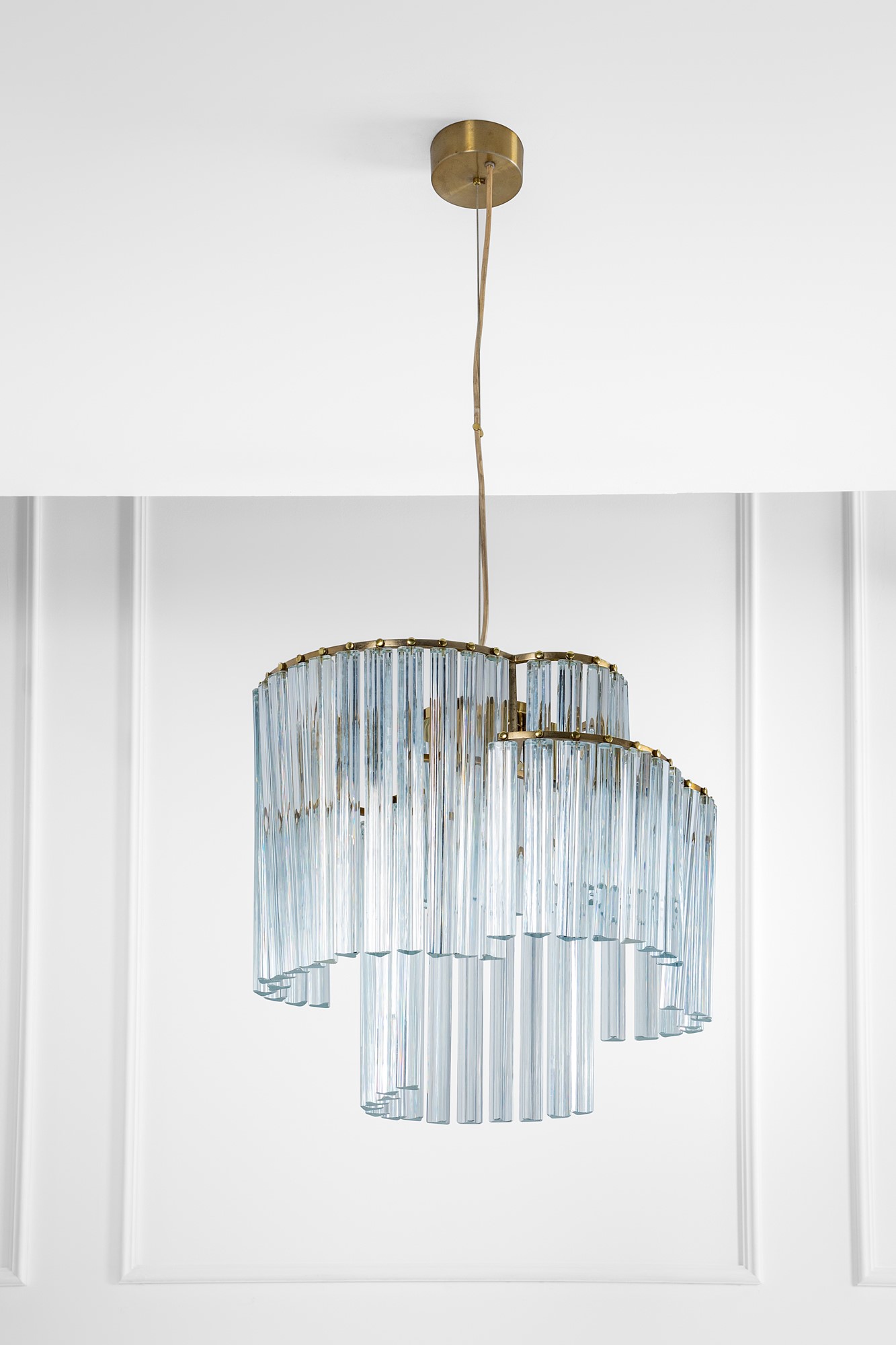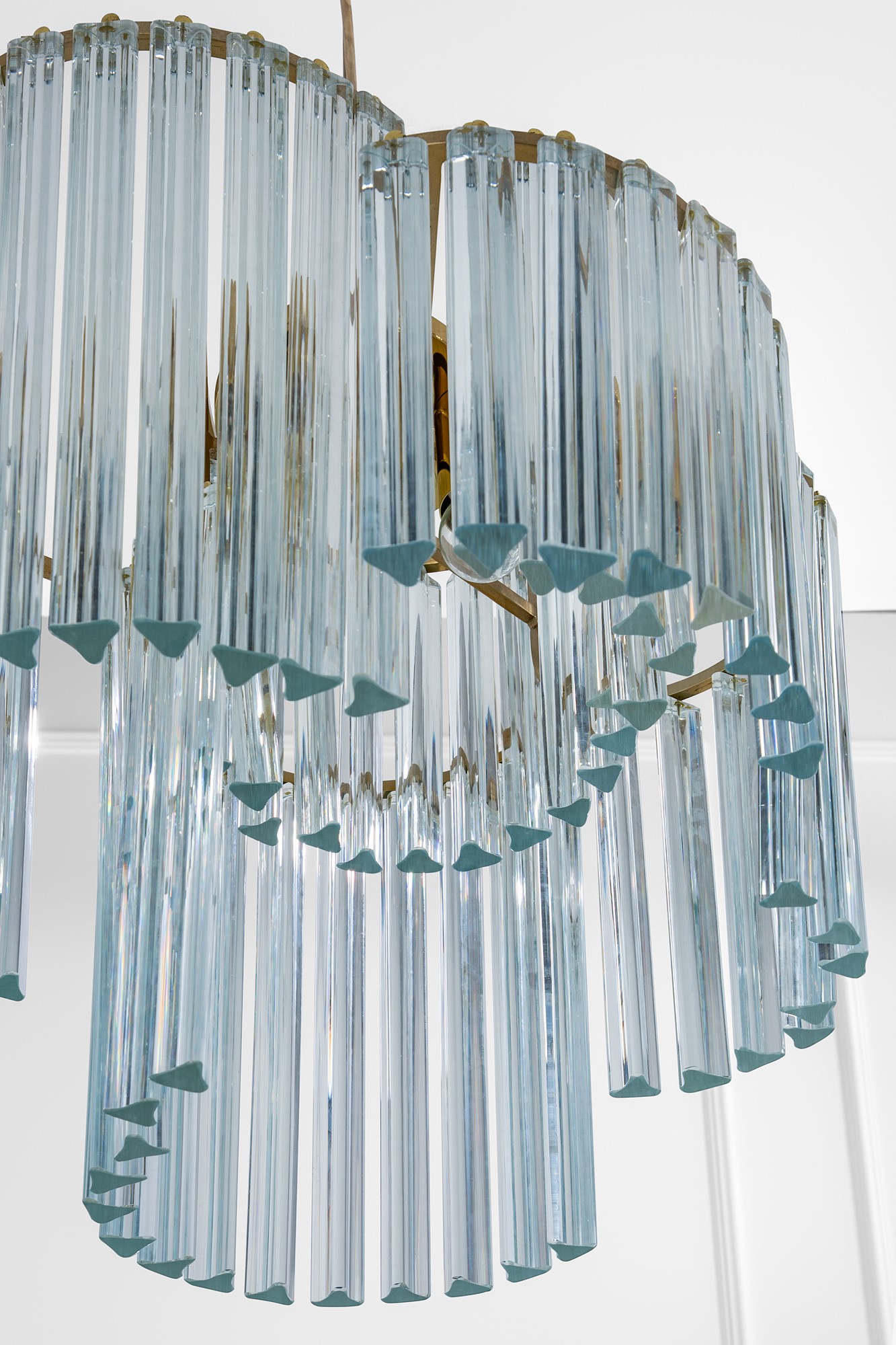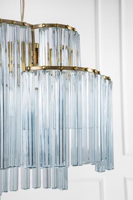 Elementi in vetro di Murano a sezione trilobata, ottone lucido.