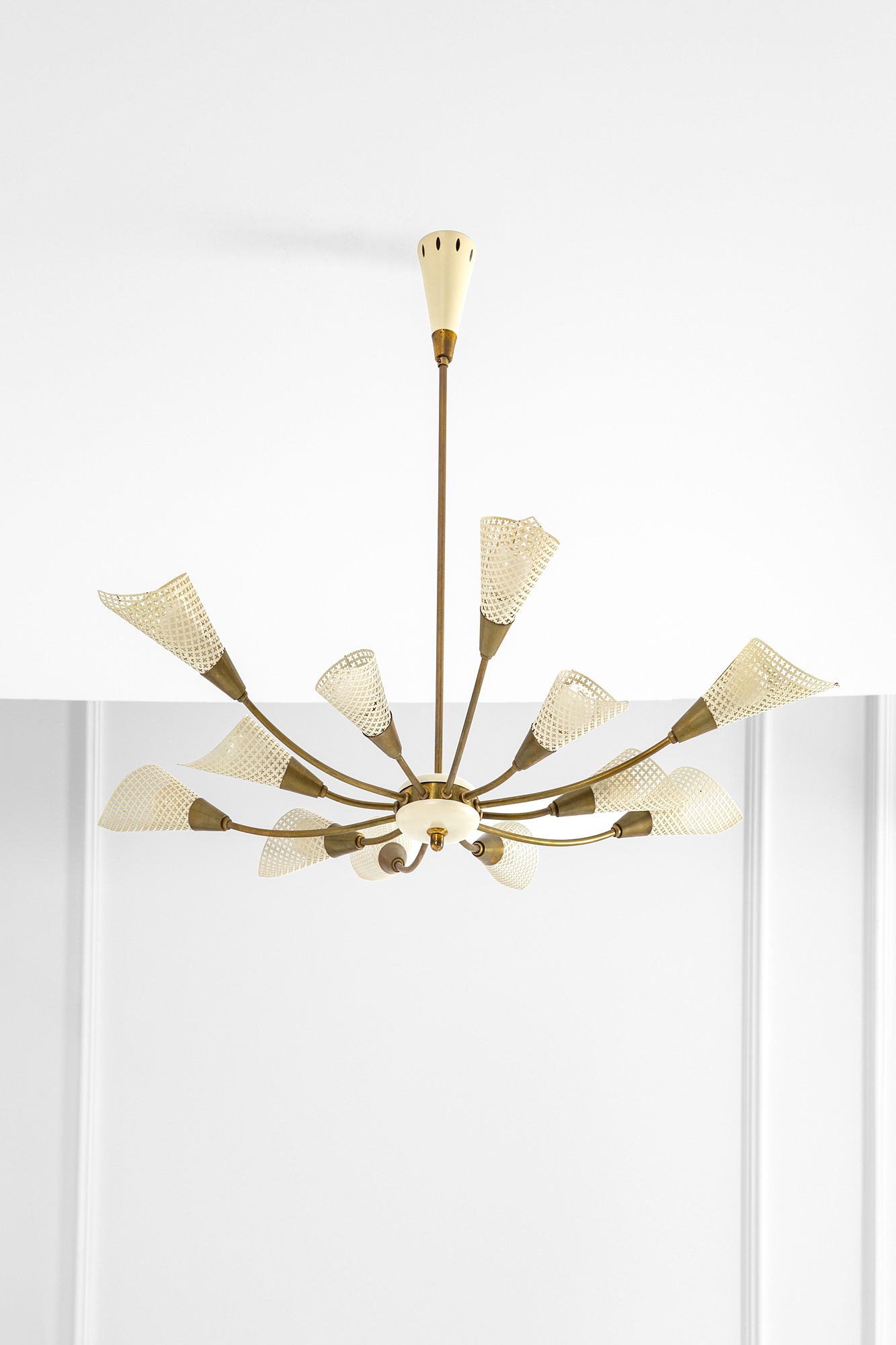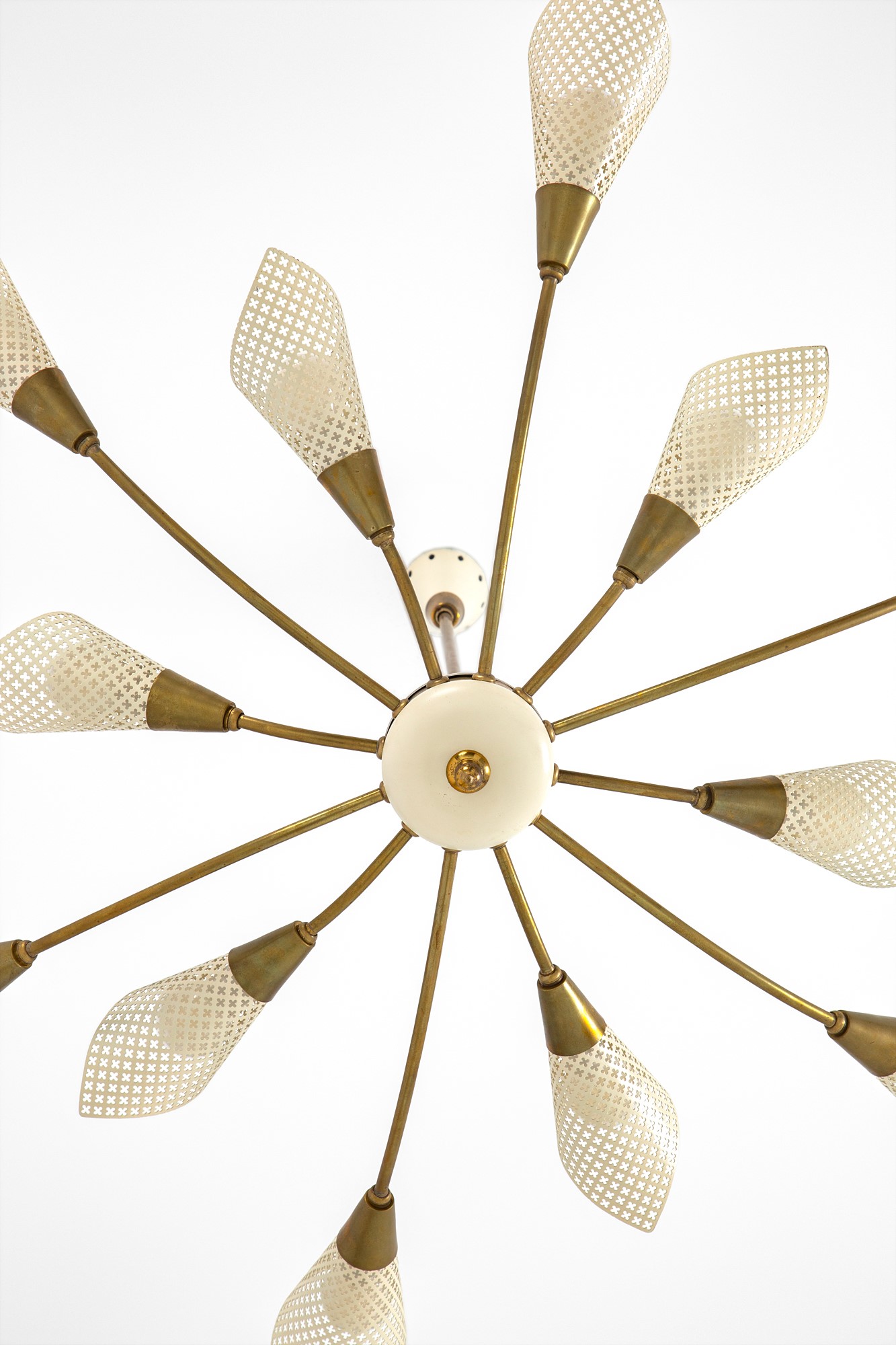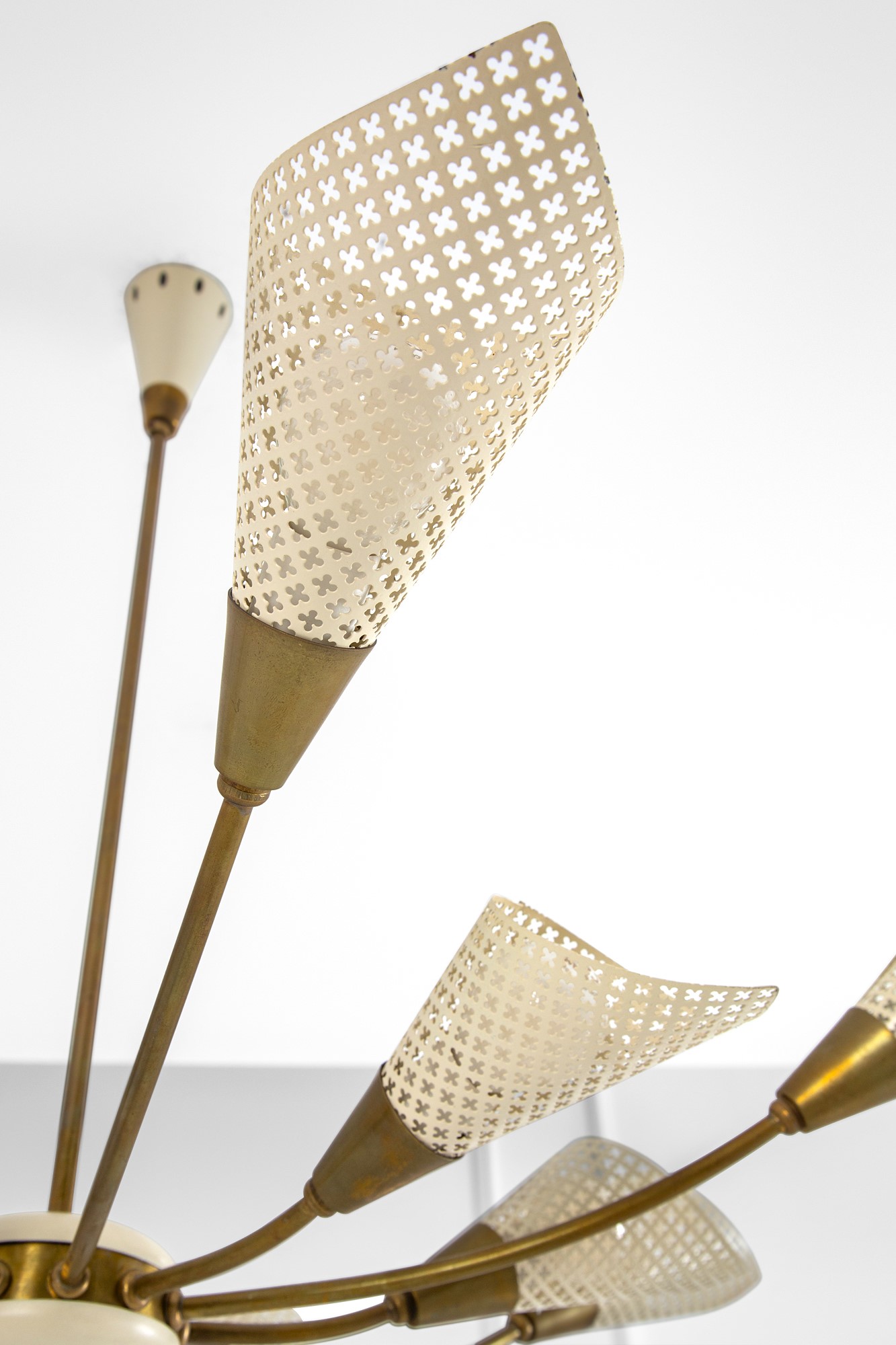Metallo laccato e traforato, ottone dorato.