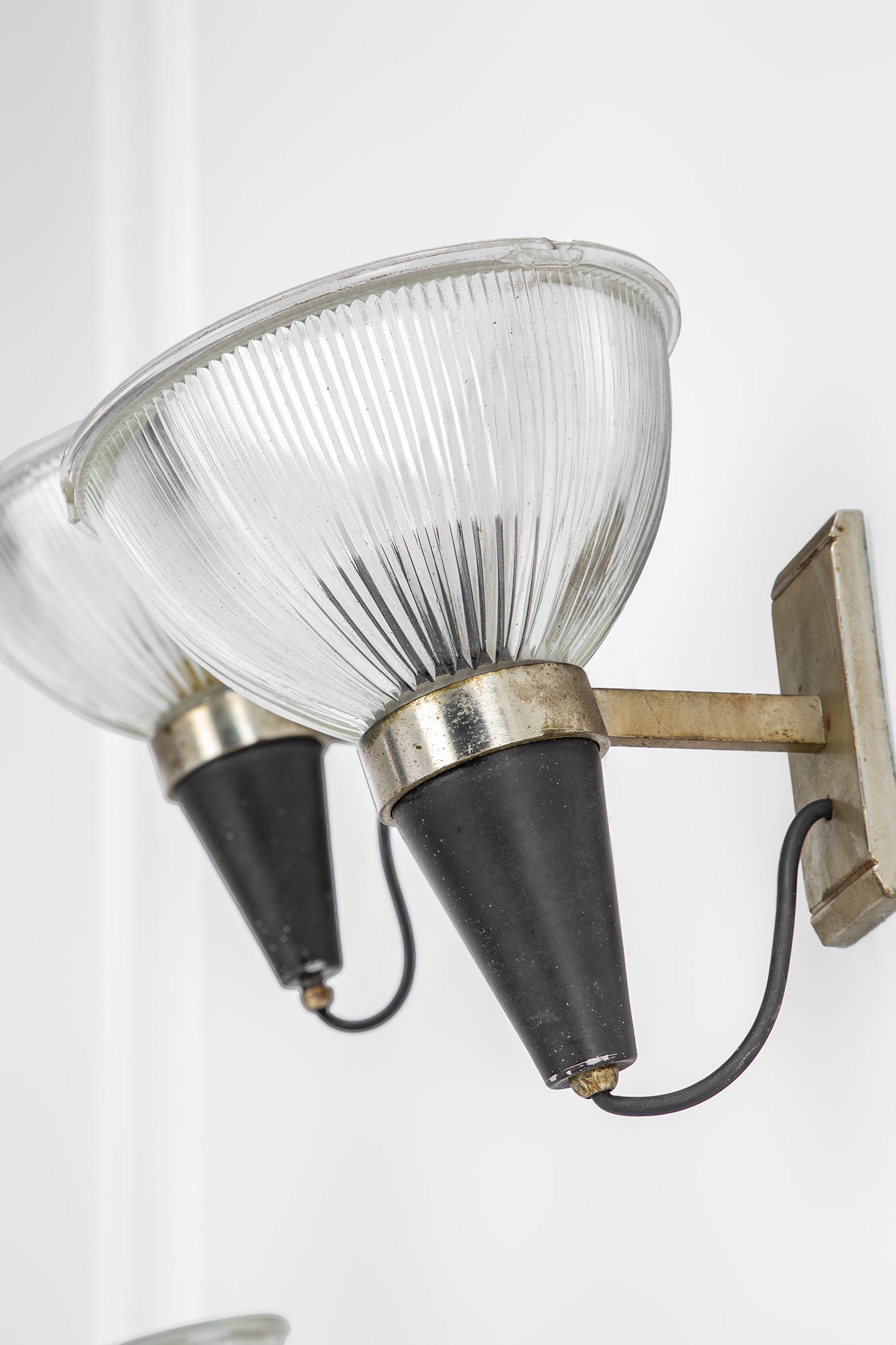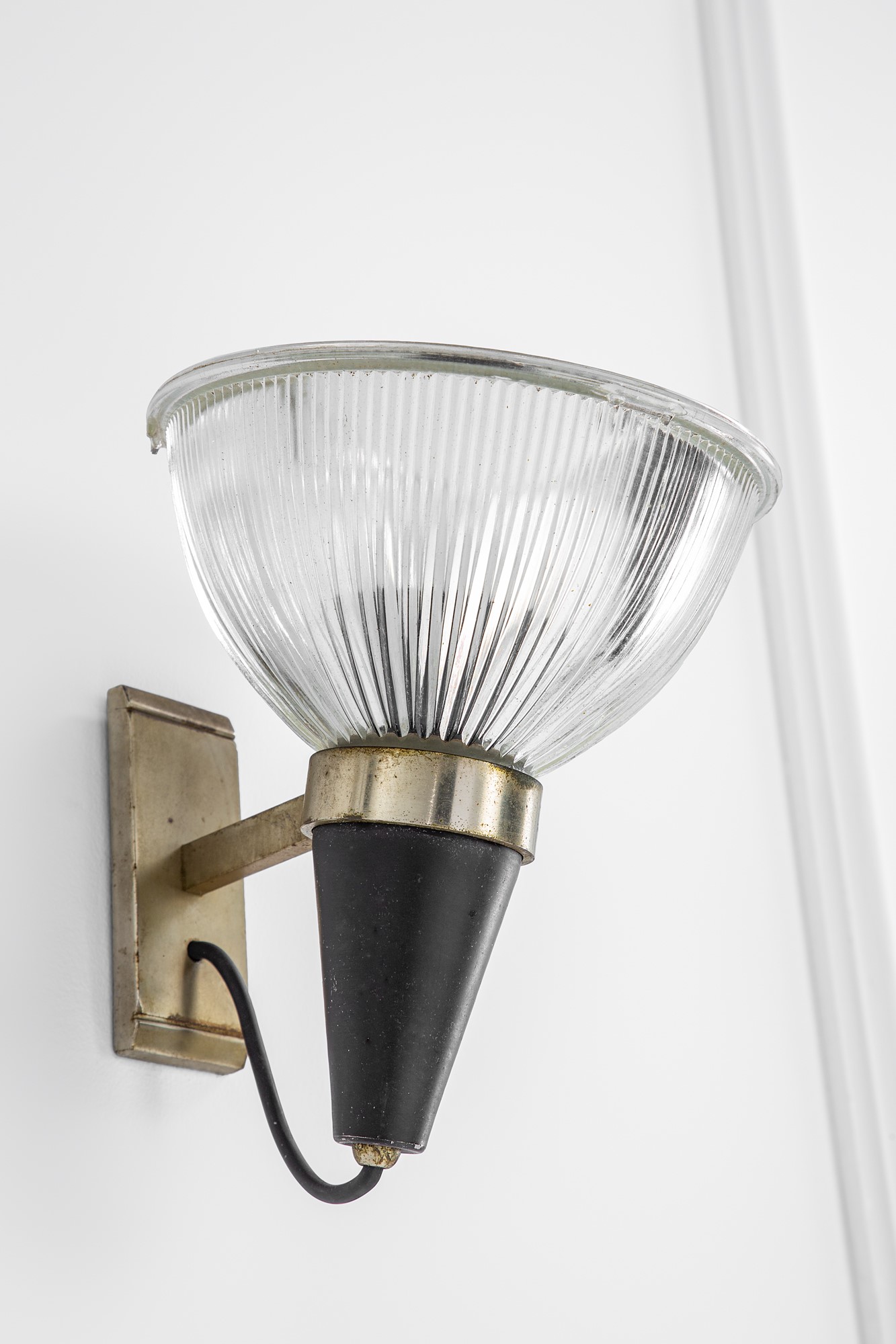 Metallo verniciato, ottone, vetro stampato.