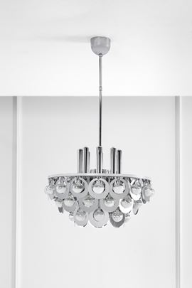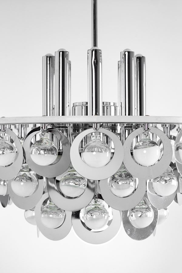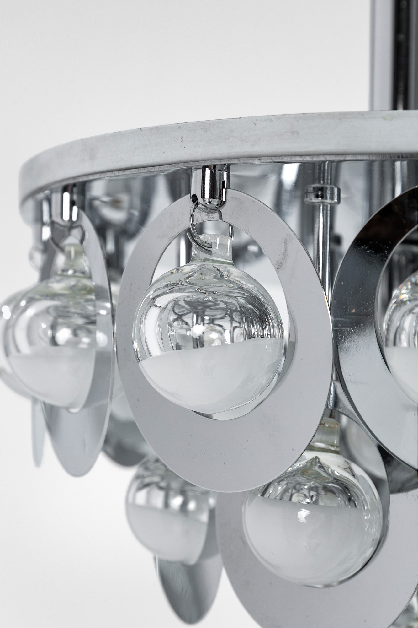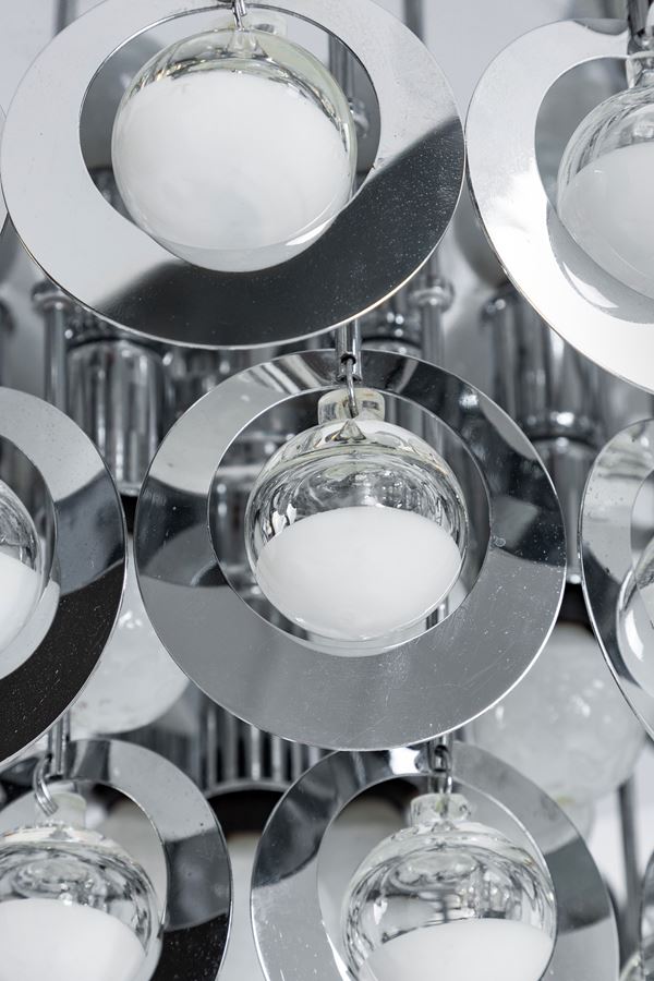 Metallo cromato, sfere in vetro trasparente e lattimo.