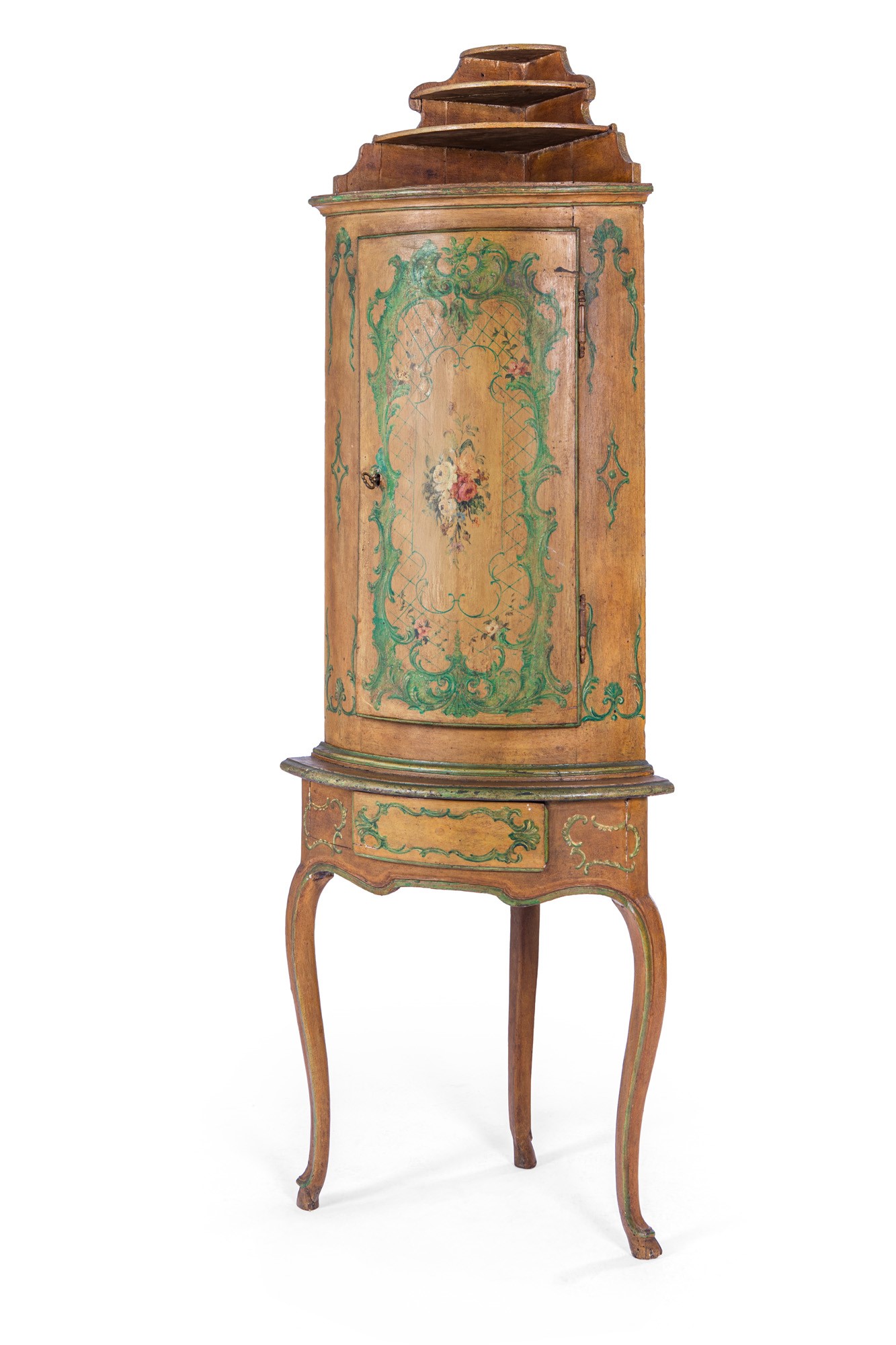 Angoliera in legno laccato e decorato in policromia.