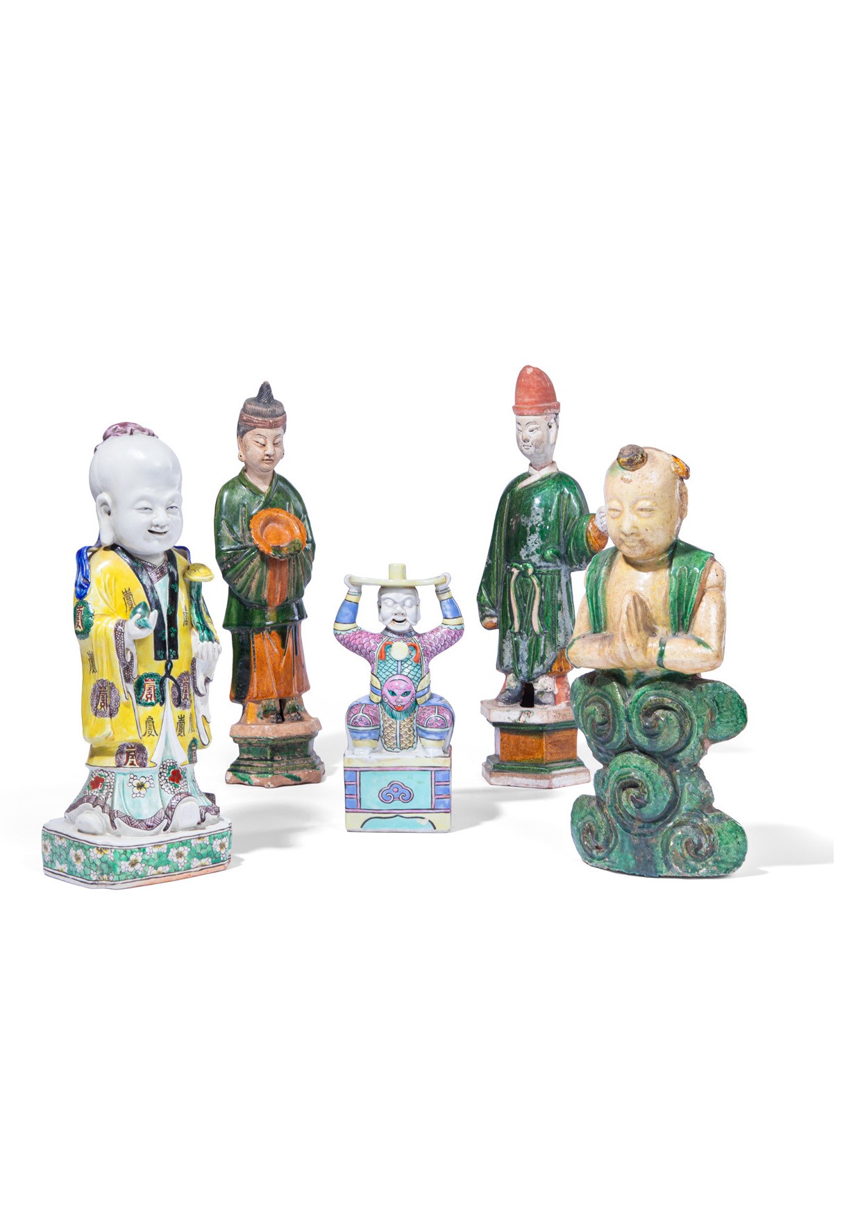 Cinque personaggi orientali in ceramica e in terracotta policrome.
