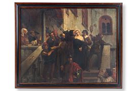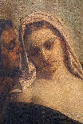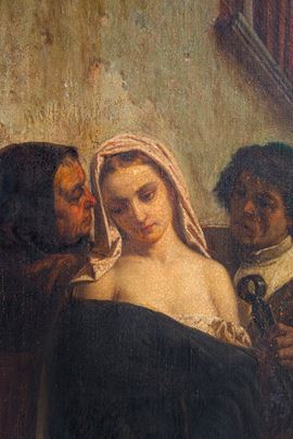 Esposto alla Promotrice delle Belle Arti nel 1859 con il n. 276 e il titolo Fra Dolcino e Margherita condotti al supplizio.