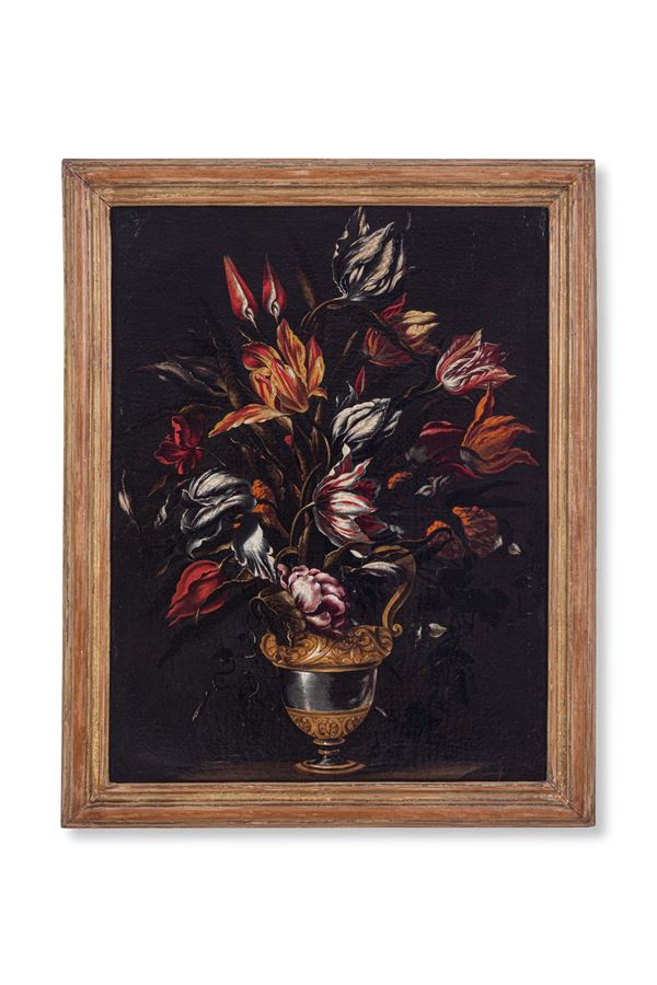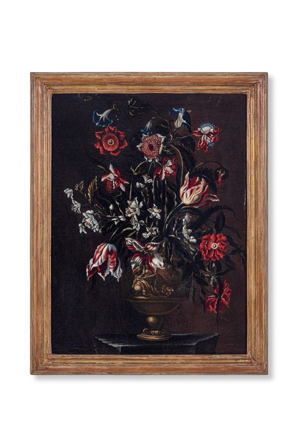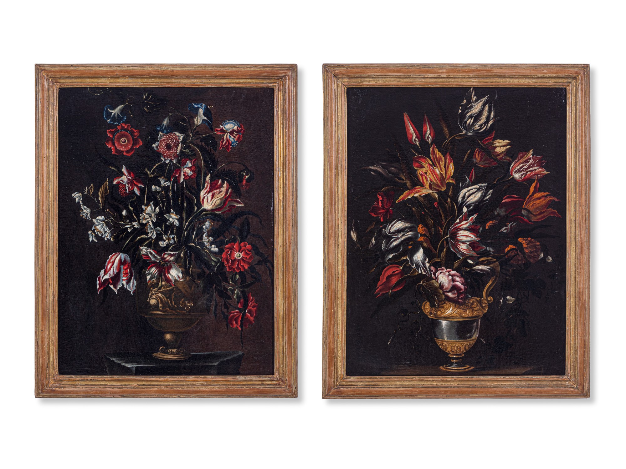 Scuola romana del XVII-XVIII sec. - Coppia di nature morte con vaso di fiori