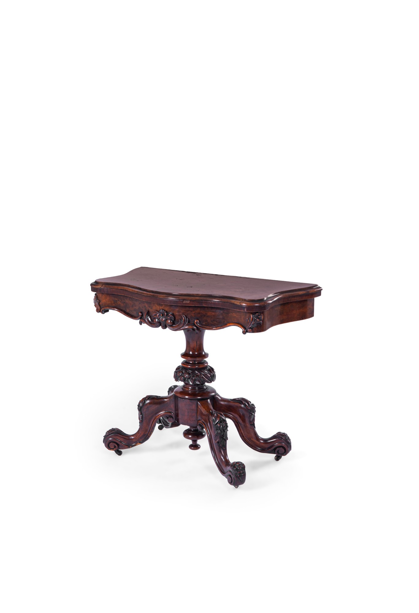 Tavolo da gioco con piano apribile in legno scolpito.