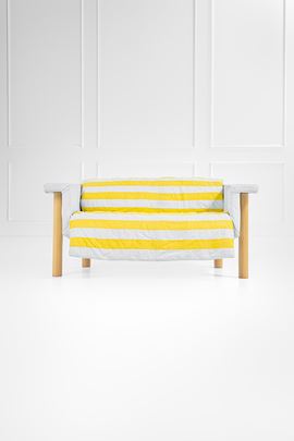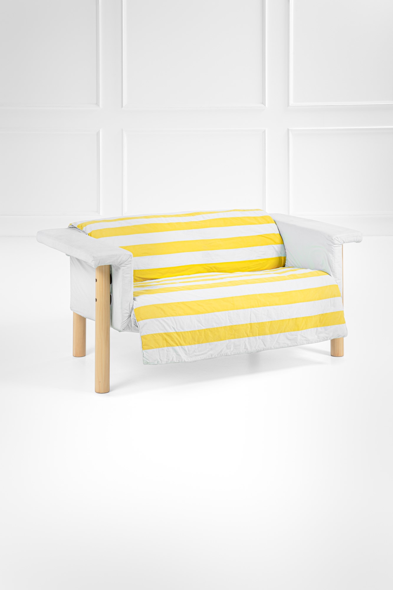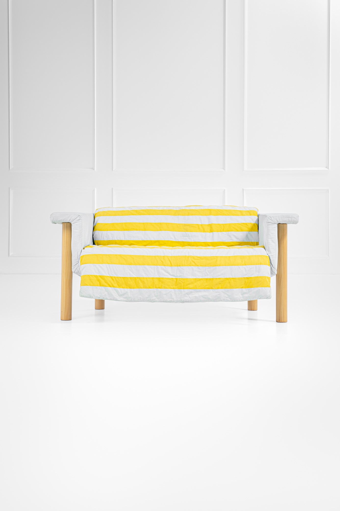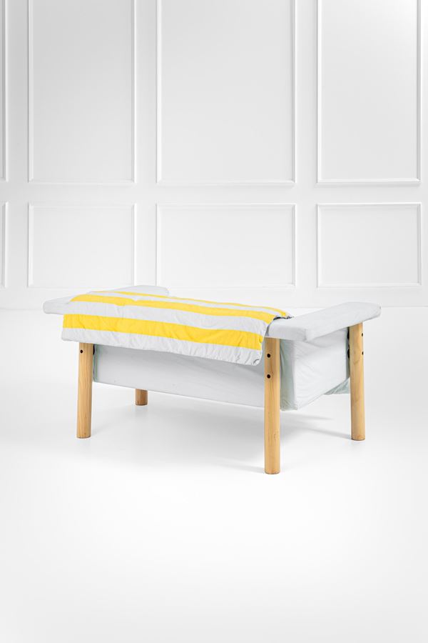 Ferro (struttura), legno compensato naturale, poliuretano espanso, nastri elastici, tessuto.