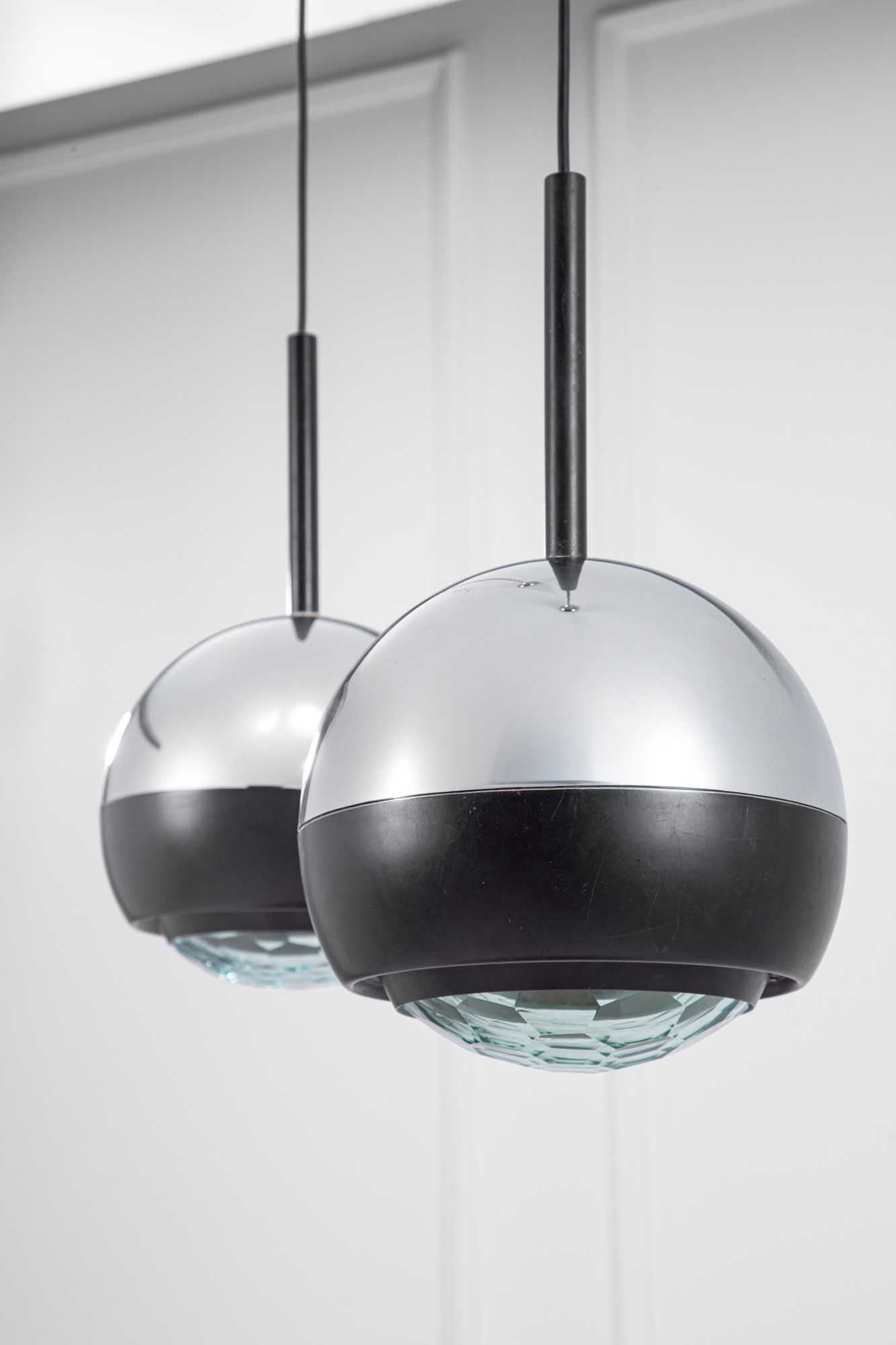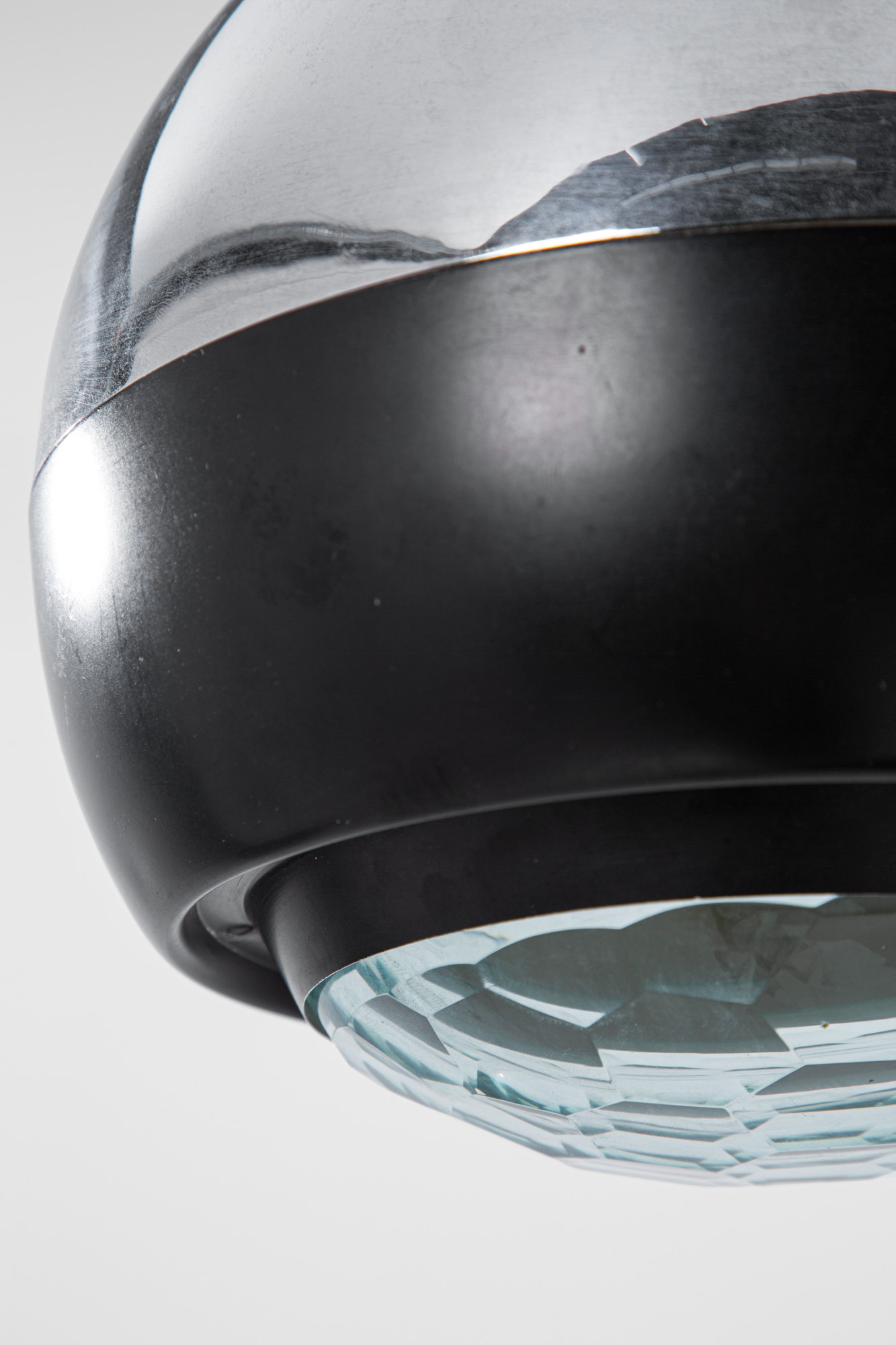 Metallo cromato, metallo verniciato, cristallo molato a gemma.